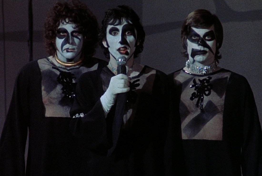 Williams wrote all the music, and performs as the Phantom’s singing voice, and it should be mentioned that the staging of the actual in-film Faust is a glorious tribute to The Cabinet of Doctor Caligari, with the Juicy Fruits/Beach Bums now performing as goth-y Greek chorus The Undead. I should mention that Williams’ songs are not at all bad, but as catchy as they are (at times), they never hit the level of “memorable” the way the aformentioned started-as-a-stage-musical songs do.